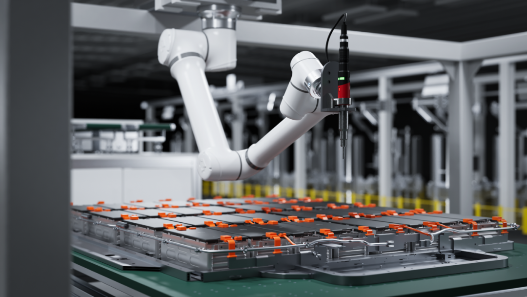 針對新能源汽車底盤電池包視覺檢測而研發(fā)的超長臂展機型EC64-19協(xié)作機器人,可基于視覺檢測、攝影攝像系統(tǒng)能在不依賴外部軸的情況下,在半徑1.9米的球形空間內(nèi)從任意角度對產(chǎn)品進行全方位、快速、準確的視覺檢測和拍攝。