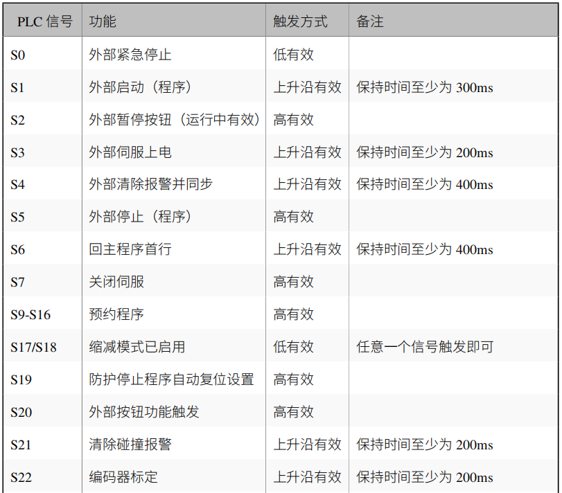 注:以上“X004”是機械臂開機后一鍵啟動的觸發信號,這個信號可以更改為虛擬信號觸發,也可以外部PLC觸發。