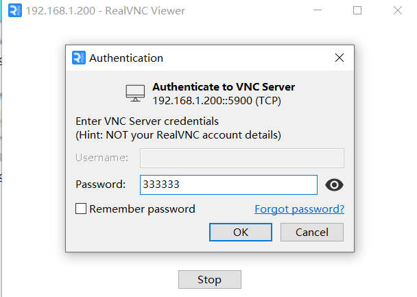 4. 在VncViewer的界面IP輸入欄中輸入對應機器人的IP地址,回車鏈接,密碼為333333,即可