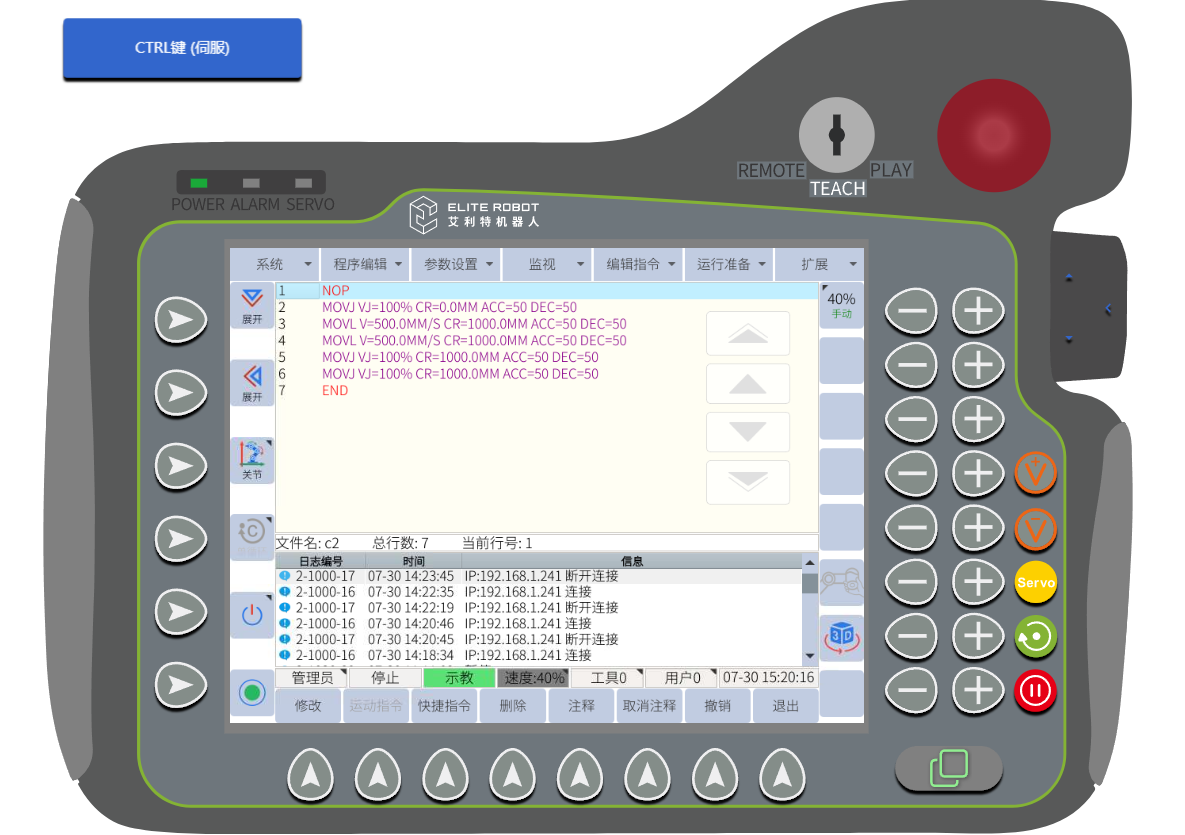 注:3.12以下3.0.1以上的版本機器人版本支持網頁示教器,支持示教器的界面顯示和控制,以及機器人模型的實時顯示和對應軌跡線的顯示,同時還支持編寫機器人的jbi運行程序和lua腳本程序。