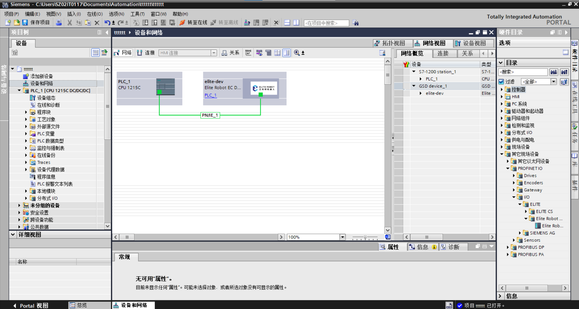 2. 添加 Elite Robot EC Device 到設備和網絡,點擊左側設備和網絡,進入頁面,在右側目錄欄找到其他現場設備-profinetI/O-IO-elite,找到elite robot EC Device如圖 3-3 所示。