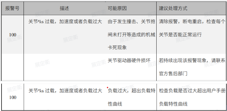 報警代碼:100關(guān)節(jié)%s 過載,加速度或者負載過大