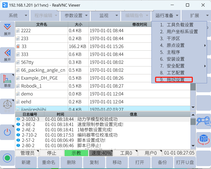 先升級為管理員權限模式,管理員權限密碼為333333,在運行準備中,點擊拖動設置。