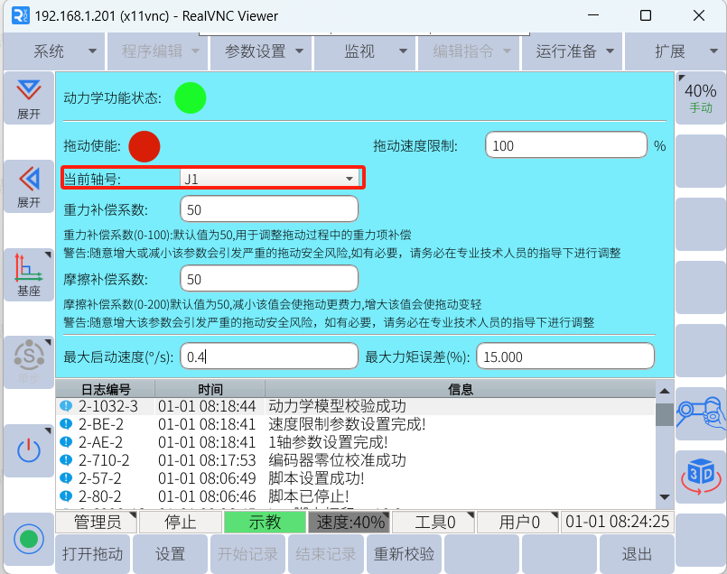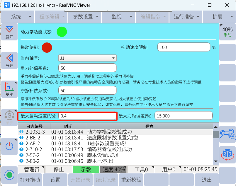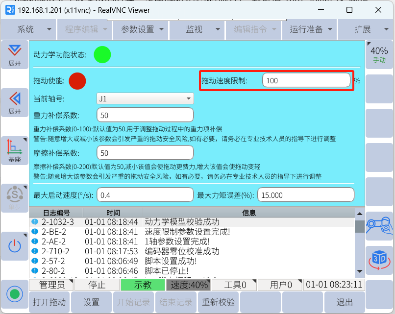 在實際操作中,我們常常會用到拖動,可以達到快速移動機器人的目的。設置合適的拖動參數可以使拖動變得更加靈活