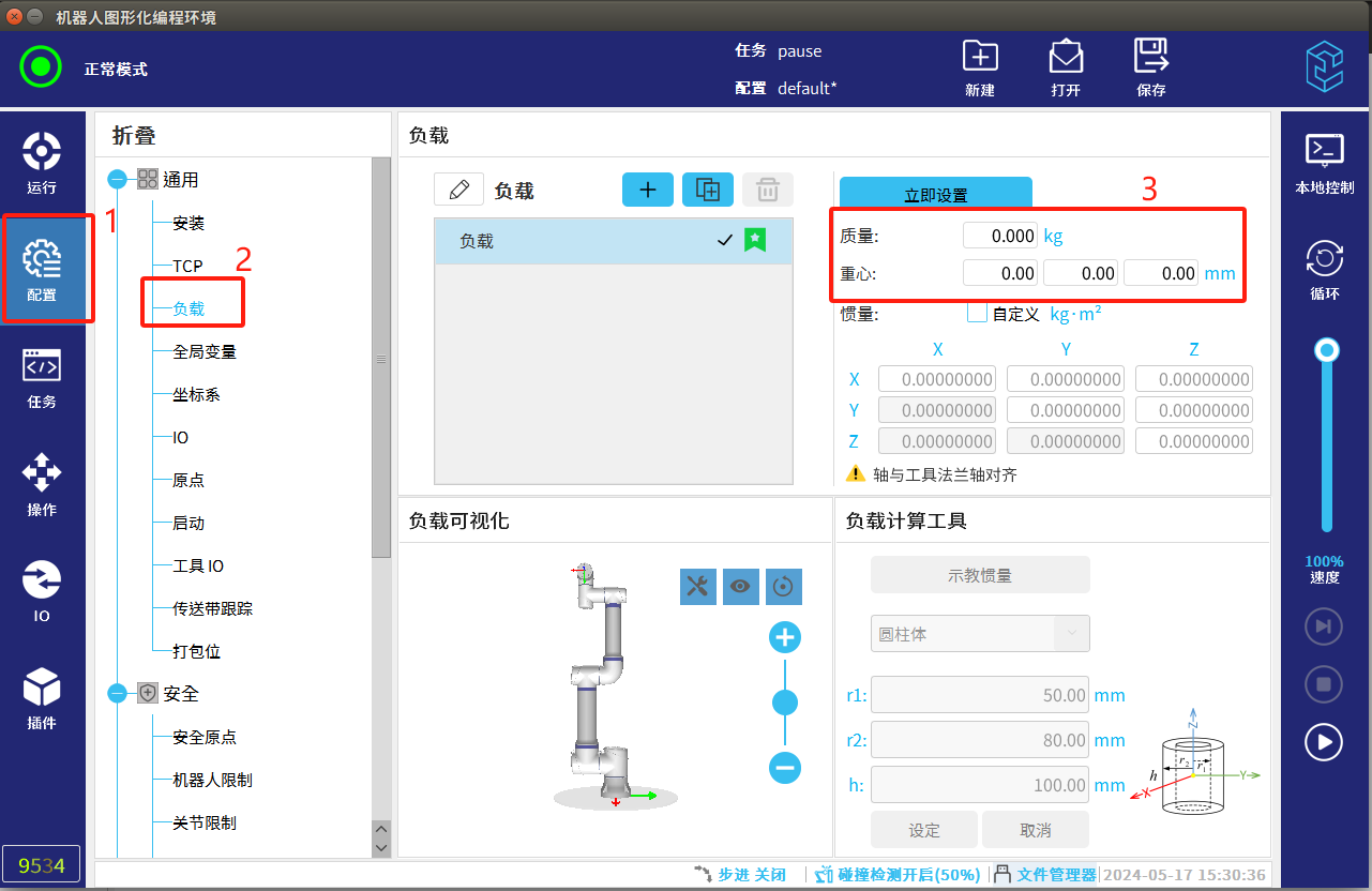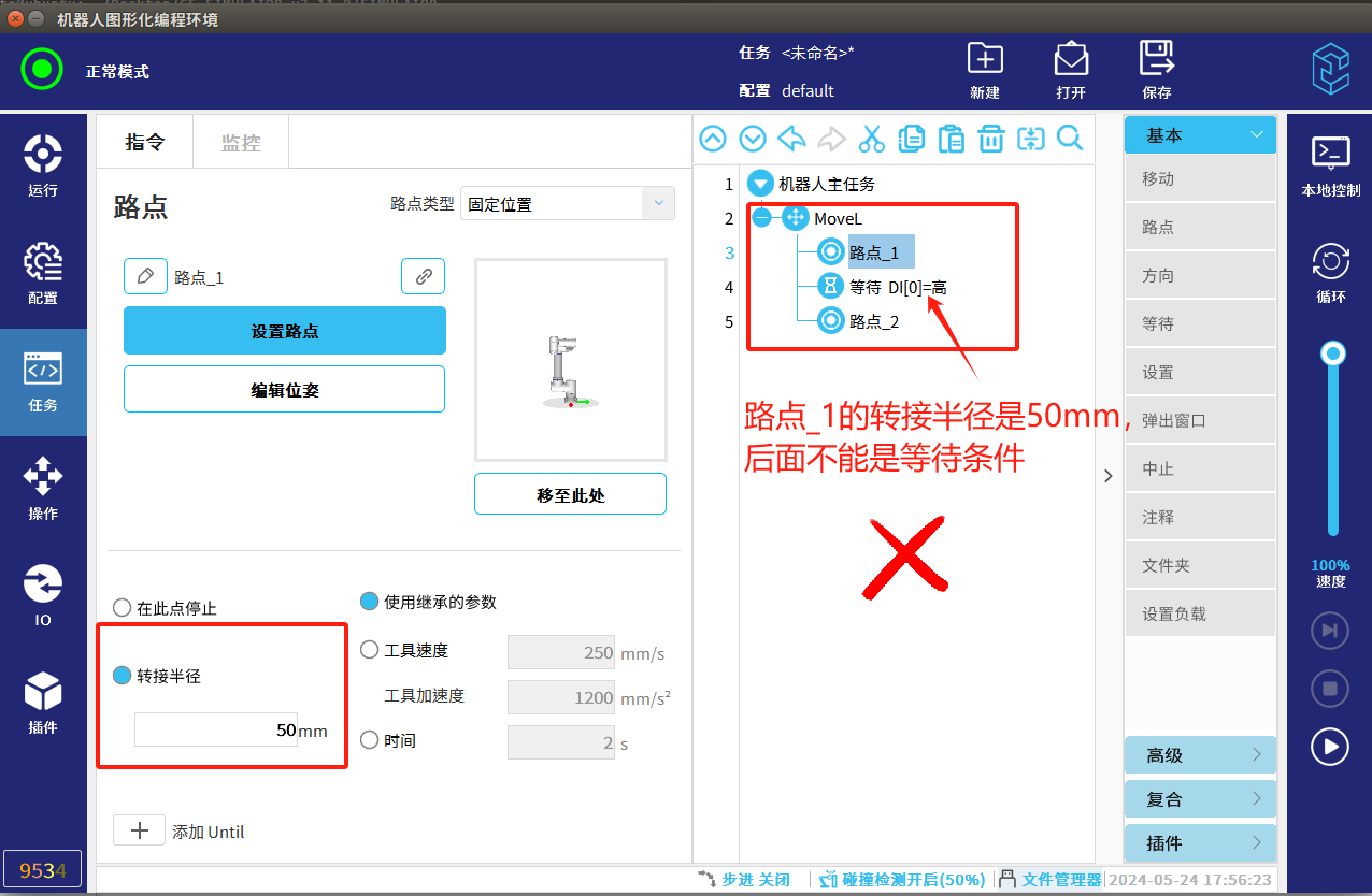 4.調試過程中速度盡量放慢,碰撞檢測要打開,避免發生碰撞機器人發生抖動。