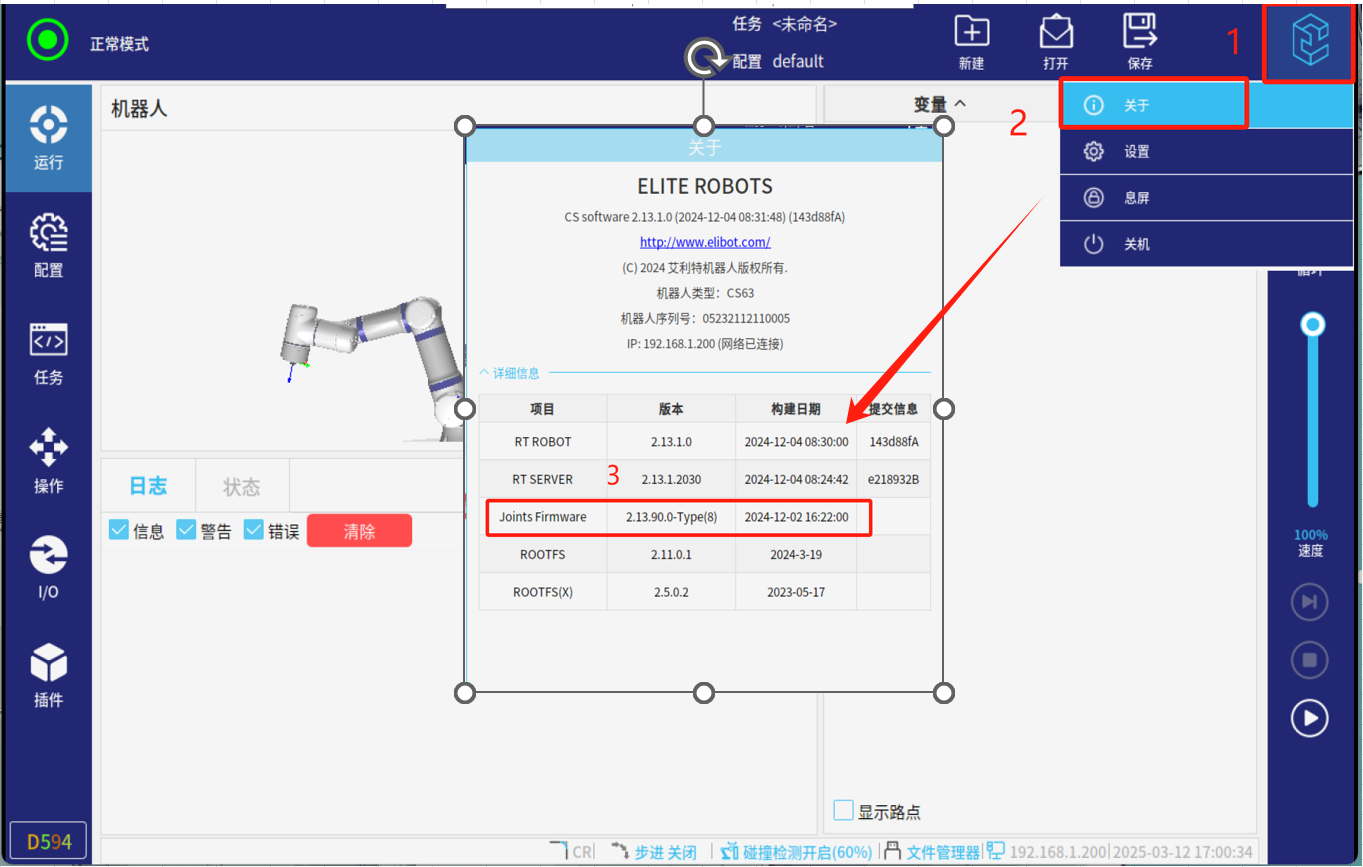 2、在正常模式下點擊如圖4-1所示右上角紅框標注區域(連續快速點擊 5-8 次)就會出現輸入密碼頁面界,然后輸入密碼:elibot,進入專家模式;