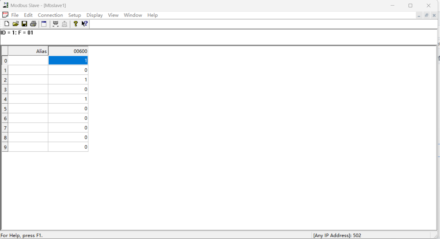 助手端將400寄存器設(shè)置為123,401寄存器設(shè)置為23,402寄存器設(shè)置為-345,403寄存器設(shè)置為-876,404寄存器設(shè)置為2345