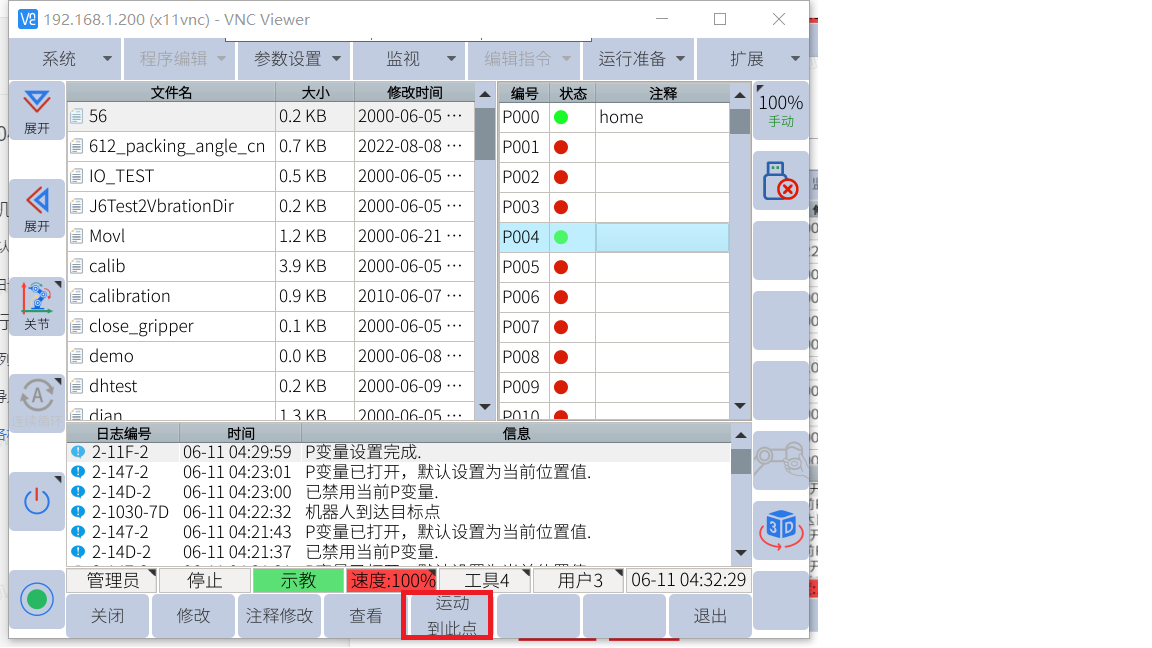 可以用p變量里輸入6個關節角度回打包位,如下圖步驟選用一個未使用的P變量并打開。根據圖片標簽步驟執行。
