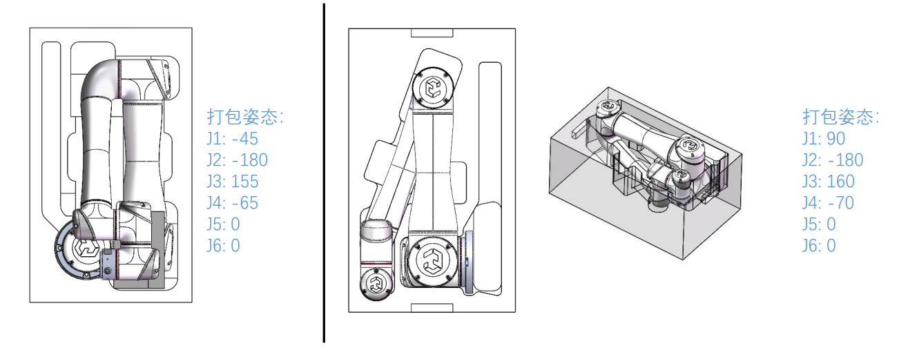 打包姿態角度:J1: -45 J2: -180 J3: 160 J4: -60 J5: 0 J6: 0